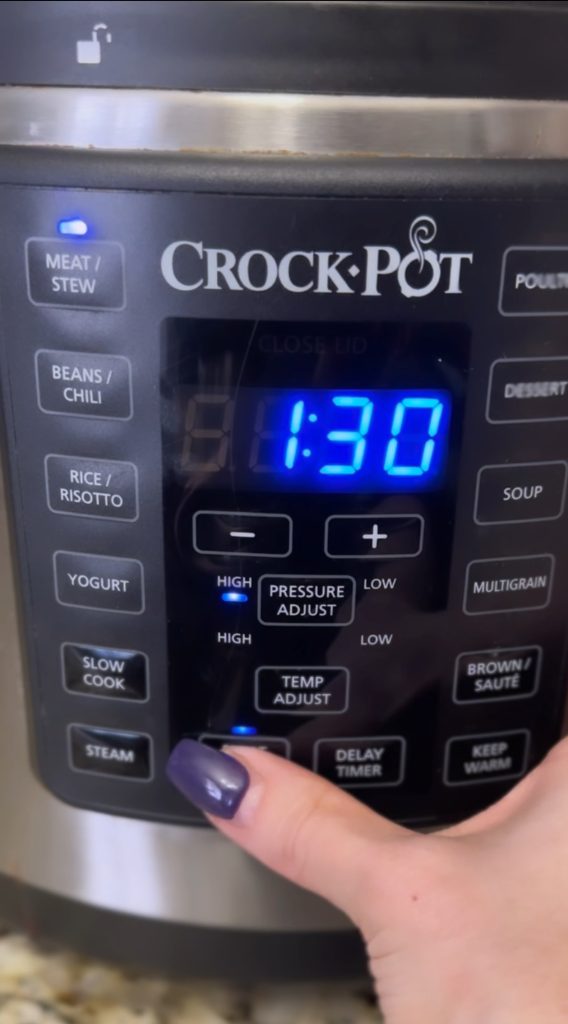 Add the contents of the skillet into your insta pot or crockpot. Add packet of Gravy mix and rest of the water. Cook for 1.5 hours on Insta-pot or 4-6 hours on crock pot.